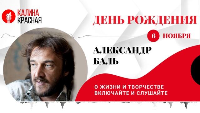 6 ноября день рождения празднует бард Александр Баль. С праздником, Александр Васильевич! Радиостанция «Калина Красная» желает вам счастья, здоровья и гармонии.