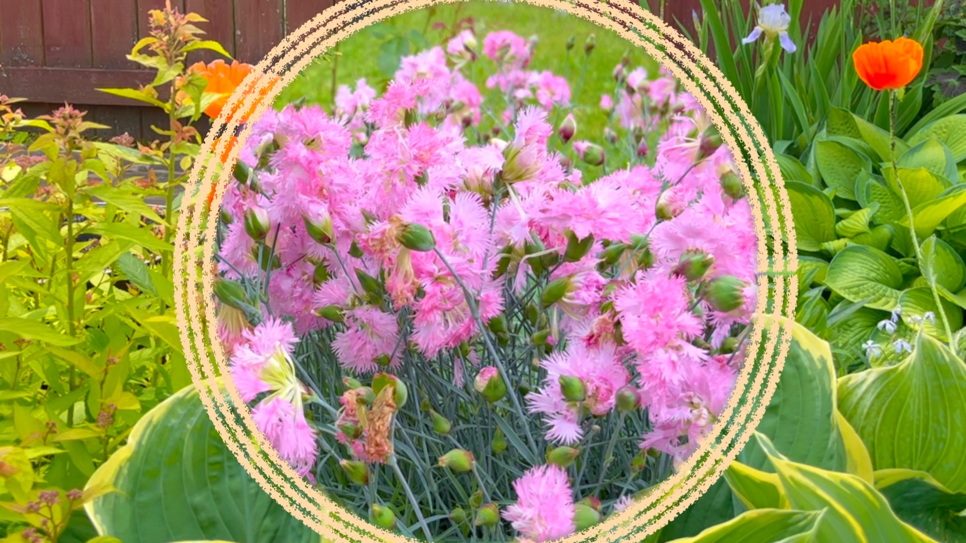 Цветущий июньский сад. Пионы / гвоздика / котовник / гравилат / молодило / анемона и др.