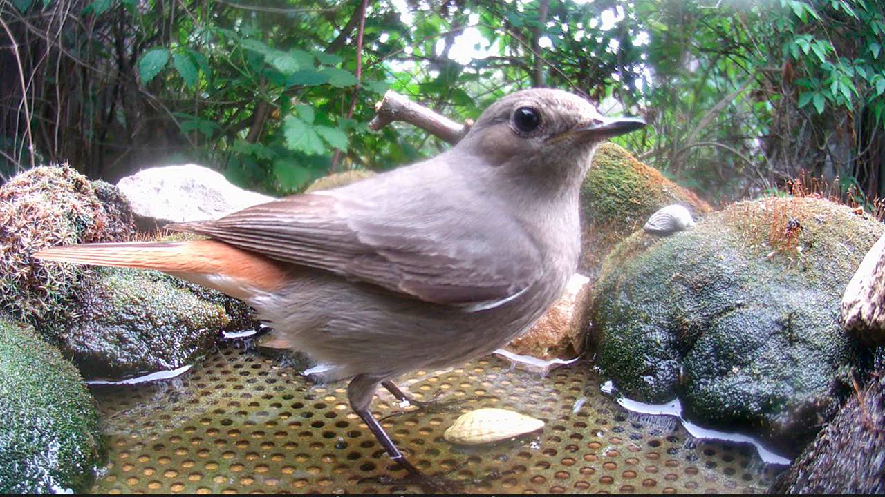 Горихвостки, воробьи на поилке / Фотоловушка в лесу