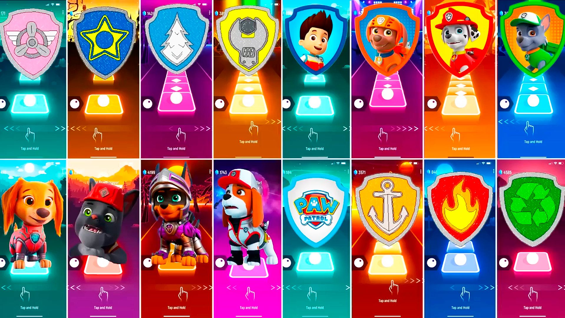 Мультики для Детей Щенячий Патруль Tiles Hop - СКАЙ, ГОНЩИК, ЭВЕРЕСТ, КРЕПЫШ, РАЙДЕР