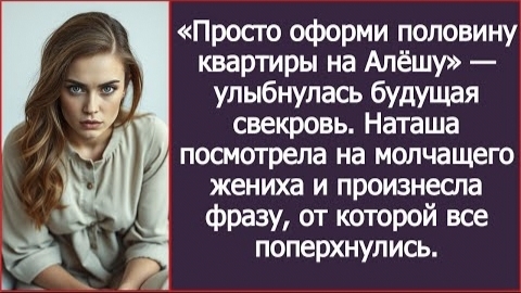 ИСТОРИЯ ИЗ ЖИЗНИ/Просто оформи половину квартиры на Алёшу,- заявила будущая свекровь