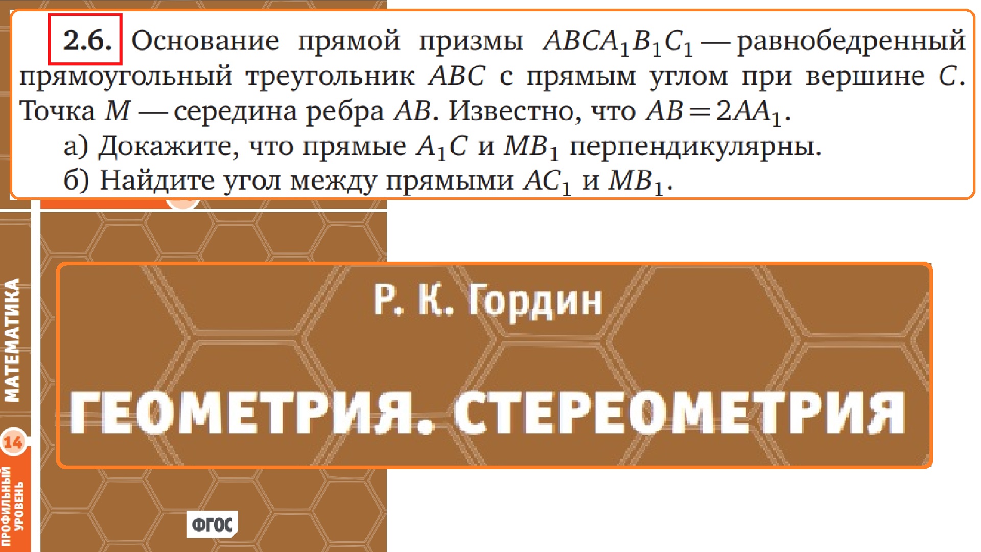 Задача 2.6. Геометрия. Стереометрия. ЕГЭ. Профильная математика. Р. К. Гордин.