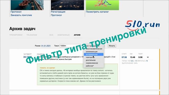Инструкция к разделу Архив тренировок