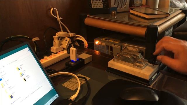 パソコンの脇のモールス練習器、インターネットの ZOOM を使えば、複数人が同時に電信が楽しめる。