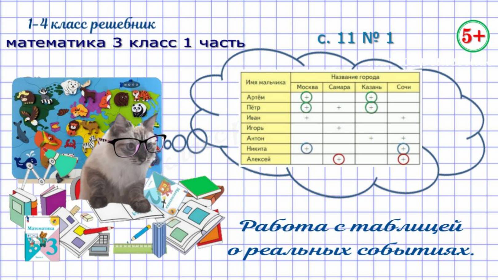 Работа с таблицей о реальных событиях. Внесение данных в таблицу . Определение по таблице, кто из мальчиков в каких городах побывал. страница 11 номер 1 математика 3 класс 1 часть Моро 2023 г. ФГОС. Если нашли ошибку, напишите, пожалуйста, в комментариях. #обучениематематике#математика3класс1частьстр11номер1#работастаблицей#заполнитаблицу#математика3класс1частьФГОС#работастаблицейореальныхсобытиях#ктокакиегородапосетил#математика3класс1частьморо2023#решебникматематика#гдзпоматематике#начальныеклассы#обучениедетей#длядетей#1-4классрешебник+
