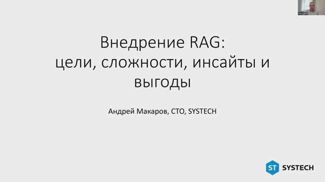 Доклад ST, Андрей Макаров. Внедрение RAG: цели, сложности, инсайты и выгоды
