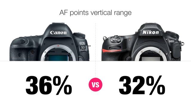 Nikon D850 vs Canon 5D Mark IV - AF points coverage comparison