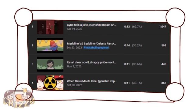 this is the yearly recap of the year 2023 the trio is now reporting our progress in the year. *********************** Links and Credits Outro music - LGMgoblinmusic: https://www.youtube.com/watch?v=yZH75... Background music - omori sound team:Pedro Silva, Jami Lynne and bo en. *********************** hey follow me in twitter:https://twitter.com/_CR1ZZ0_ *********************** What I Use Hardware: Processor-AMD A6-6400K APU with Radeon(tm) HD Graphics 3.90 GHz Ram-12.00 GB System-64-bit,x64-based processor Drawing-Sadly I don't have a drawing one, I Use an Average Computer Mouse Software: Opentoonz,Shotcut,Audacity,Levelator,OBS Studio,GIMP *********************** 1̶0̶ Let's go to 100 Subs. ┏(^0^)┛┗(^0^) ┓ *********************** Anyway Thanks For Watching. Bye... ░░░░░░░░░░░░░░░░░░░░ ░░░░░░░░░░░░░░░──░░░ ░░░░░░░────────██│░░ ░░░░░░│██████████│░░ ░░░░░░│██░░░░░│██│░░ ░░░░░░│██░░░░░░──░░░ ░░░────██░░░░░│██│░░ ░░│██████████████│░░ ░░░───│██────────░░░ ░░░░░░░──░░░░░░░░░░░ ░░░░░░░░░░░░░░░░░░░░ #2022 #yearly #youtuberewind #CR1ZZ0