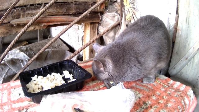 Охраняю кошку от кур) пока поест.
