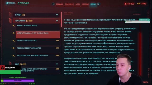 В трущобах Ви прошлось приложить очень много усилий и проваленных попыток чтоб безопасно вытащить тело человека из трущоб. После чего было прочтено множество статей и найдено 10 странных граффити. Группа ВК: https://vk.com/public194804224 Инстаграм: https://www.instagram.com/killerviz Телеграм канал: https://t.me/ewaleblog ТикТок: https://www.tiktok.com/@ewalet.evans.live Трово: https://trovo.live/Ewalet Стримы: https://www.youtube.com/channel/UC8qZcxvwxXChw8hWouxqWpQ Discord: https://discord.gg/8eXpt5vWCQ Поддержать блогера: https://new.donatepay.ru/@983380 Содержание: 00:00 : "Стелс" в трущобах 05:45 : Нейрохирург! Номер один! Твердый рука! 08:08 : Шут из Найт-Сити 09:15 : Разговор с Виктором 12:27 : Разговор с Мисти 14:26 : Переписка с Реджиной 14:52 : Звонок от Роберта 15:56 : Переписка с Робертом 16:20 : Странное граффити №1 16:30 : Читаю чипы 25:54 : Странное граффити №2 26:04 : Странное граффити №3 26:49 : Странное граффити №4 27:25 : Странное граффити №5 28:46 : Читаю статьи 33:48 : Странное граффити №6 37:12 : Странное граффити №7 38:23 : Странное граффити №8 38:46 : Странное граффити №9 39:36 : Странное граффити №10 Приветствую всех у себя на канале. На моем канале вы увидите ролики по вселенной World of Warcraft, а также прохождение разных игр. Все желающие помочь в развитие канала могут подписаться на канал, поставить лайк и оставить свое мнение о том что происходит на экране. Также я веду прямы трансляции на площадке Трово, все желающие могут присоединиться к моим трансляциям и пообщаться на разные темы жду всех. Мои гаджеты: Ноутбук: HP Victus 16-e0010ur Видеоадаптер: NVIDIA GeForce RTX 3050 Laptop (4 ГБ). Процессор: AMD Ryzen 5 5600H (6 ядер и 12 потоков, 3.30GHz) Оперативная память: 16 Гбайт (2 x 8 Гбайт) ОЗУ, DDR4, 3200 МГц Экран: Full HD IPS (1920 x 1080), диагональ 40,9 см (16,1"), 144 Гц Видеокамера: Samsung Galaxy A51 (DroidCAM) Микрофон: M-Audio NOVA Black Звуковая карта: M-Audio M-Track AIR 192|4 Наушники: M-Audio HDH40 Мышь: Logitech 4418a-mr0078 ПК: Видеоадаптер: NVIDIA GeForce RTX 2060 (8 ГБ). Процессор: Intel(R) Core(TM) i5-10400F CPU (2.90GHz). Оперативная память: 16 Гбайт (2 x 8 Гбайт) ОЗУ, DDR4, 2666 МГц Экран: Samsung S22B350T