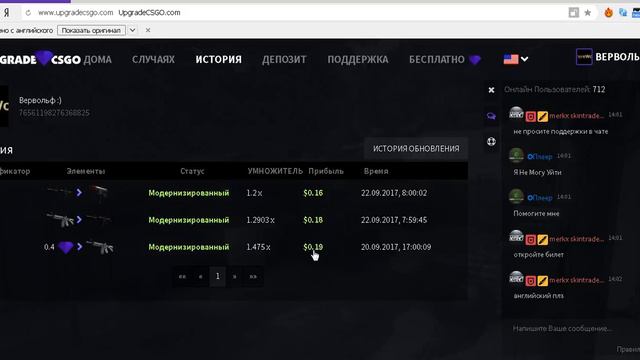 САЙТ: https://www.upgradecsgo.com/cube ПРОМОКОД: werewolf ВСЕМ УДАЧИ И СПАСИБО)))