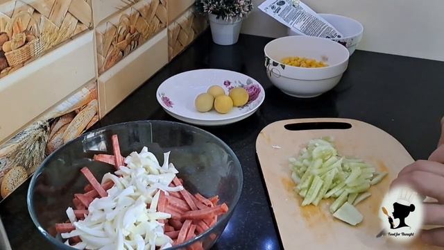 Ингредиенты Колбаса-200 гр. Яйца- 4 шт. Огурцы- 2,3 шт. Консервированная кукуруза- 1 банка Майонез - ст. л. Соль по вкусу. ПРИЯТНОГО АППЕТИТА! #САЛАТСОЛОМКА#праздничныйсалат#майонезныйсалат#салатскукурузой#Food for Thought – Еда для меня#Едадляменя