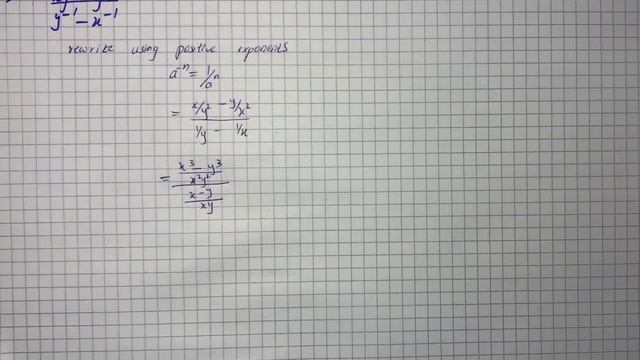 Solution to Algebra question: Solve the equation: \frac{xy^{-2}-yx{-2}}{y^{-1}-x^{-1}} ⃤ Plainmath is a free database of math knowledge. We bring together math problems of any kind and users knowing how to solve them and willing to share it. We believe that clear and accessible examples are the best way to study. We build a math-friendly community and provide an easier and more efficient way to learn and perceive information. 👉Learn More at plainmath.net 🔔SUBSCRIBE to our channel here: https://www.youtube.com/channel/UCavbeELH0uHbjXoM0yFcZnw?sub_confirmation=1 🙋♂️Need help with math? Turn to community : https://plainmath.net/ask #algebra1review #algebra1equations #algebra1finalexam #algebra1formulas #algebra1inequalities
