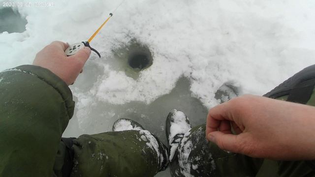 Рыбалка в снег, ветер ,а рыба клюёт.