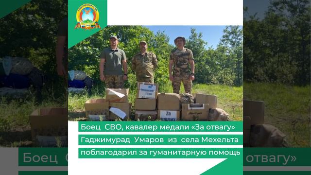 Боец СВО, кавалер медали «За отвагу» Гаджимурад Умаров из села Мехельта поблагодарил за гумпомощь