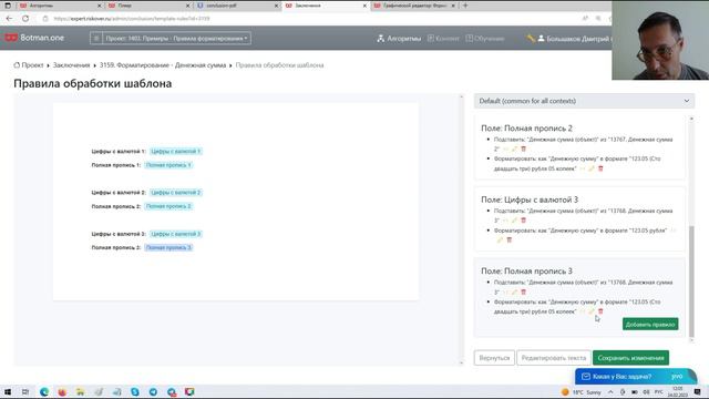 Настройка автоматического перевода денежной суммы в пропись в Botman.one