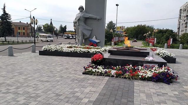 Вечный огонь горит на памятнике в честь дня победы в городе Орехово-Зуево