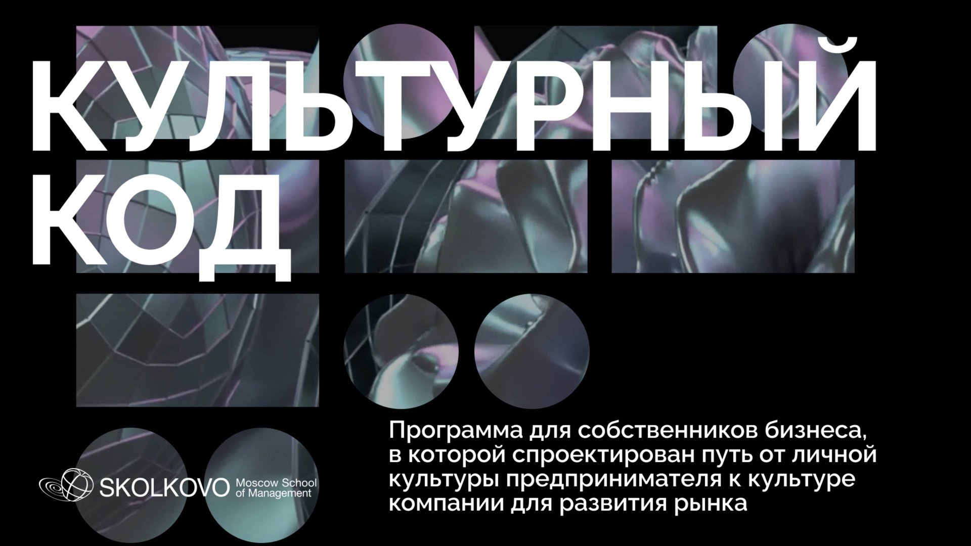 Программа для собственников бизнеса, в которой спроектирован путь от личной культуры предпринимателя к культуре компании для развития рынка Подробнее: https://www.skolkovo.ru/~gsF99