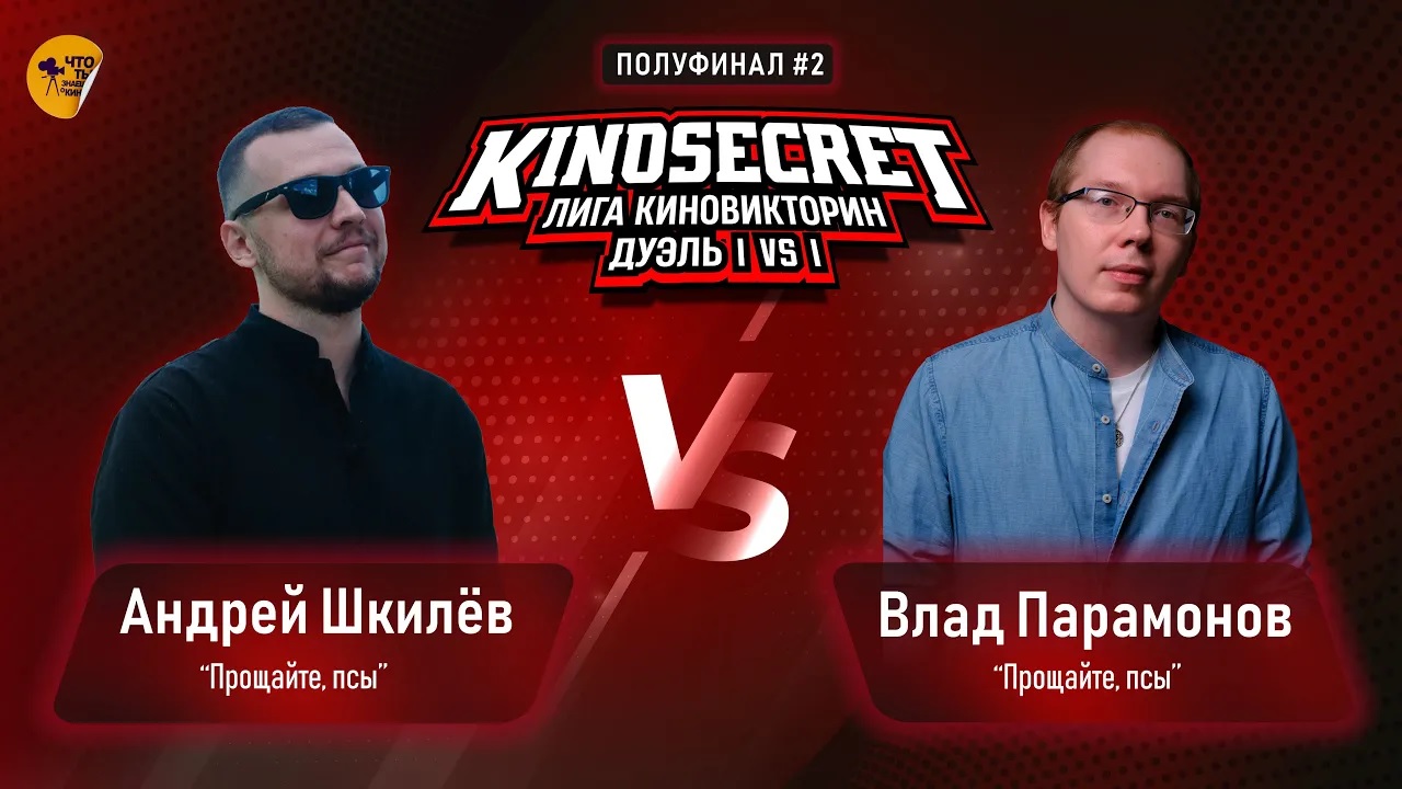 Лига КиноВикторин - большой проект, который объединяет киноманов со всего мира. Одним из форматов Лиги является игра КиноСекрет.Дуэль. КиноСекрет.Дуэль - это игра в которой 2 участника выясняют кто из них лучше всего разбирается в кинематографе. Участники игры 18-й игры: - Влад "Mr. Белый" Парамонов, г. Москва, команда "Прощайте, псы" - Андрей "Mr. Блондин" Шкилев, г. Калуга, команда "Прощайте, псы" За кого болеете вы? -------------- Звук в игре от Kazaku Records Аранжировки , сведение , мастеринг ? ? ? https://www.youtube.com/channel/UCMPnxwJV2h5RideLcKU7cHw -------------- Монтаж игры - Степан Пинигин (https://t.me/sp_videomaker) ------------- Если вы хотите поддержать наш проект, это можно сделать по ссылке: https://boosty.to/kinosecret/donate Если вы хотите, чтобы ваши вопросы прозвучали в одном из ближайших выпусков, отправляйте свои наброски на почту - info@kinosecret.com Если вы хотите принять участие в записи Своей Игры среди подписчиков канала, выполните действия, которые описаны в этом видео - https://youtu.be/AYPrJH0AJ_I -------------- Таймлайн: 00:00 - Вводная информация об игре 04:30 - Приветствие игроков 9:40 - Первый раунд 22:22 - Второй раунд 39:42 - Третий раунд 47:32 - Четвертый раунд -------------- Наш телеграм канал - https://t.me/QuizKinoSecret Наш сайт - http://www.kinosecret.com/ Наши игры в Иркутске - https://vk.com/kinosecret Наши подкасты - https://kinosecret.mave.digital/ Наш инстаграм - https://www.instagram.com/kinosecret_quiz/ Наша группа в ВК - https://vk.com/kinosecret_russia По условиям франшизы - http://www.kinosecret.com/franshisa/ -------------- #киносекрет #KinoSecret #свояигра #квиз #quiz #квизонлайн #квизкино #киноквиз #квизкиноимузыка #викторина #киновикторина #онлайнкиноквиз