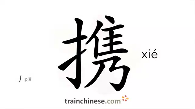 携 (xié) carry, take along; hand in hand; to join hands; collaborate