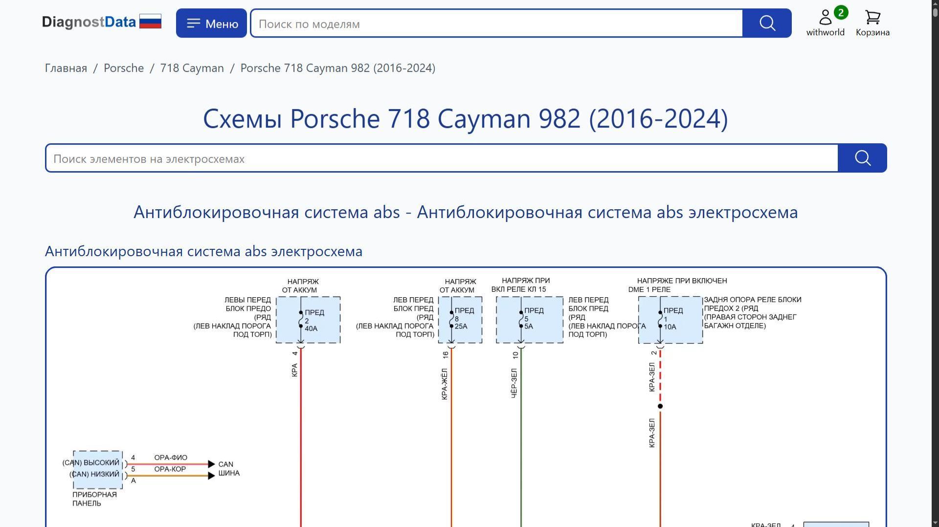 https://diagnostdata.ru/porsche/718-cayman/982-2016-2024/ Электрохемы, распиновки, схемы электропроводки Porsche 718 Cayman 982 (2016, 2017, 2018, 2019, 2020, 2021, 2022, 2023, 2024 годов выпуска) 2.0L TURBO, 2.5L TURBO, 4.0L TURBO Схемы на русском языке для систем: Схемы Антиблокировочная система abs, Схемы Кондиционирование воздуха, Схемы Дворники и омыватели, Схемы Точки подключения масс, Схемы Память, Схемы Предупреждение, Схемы Подушки безопасности, Схемы Блок предохранителей и реле, Схемы Подогрев стекол, Схемы Сигнализация, Схемы Круиз-контроль, Схемы Складная крыша/люк, Схемы Центральный замок, Схемы Вентилятор охлаждения, Схемы Управление зеркалами заднего вида, Схемы Can шина, Схемы Сиденья, Схемы Приборная панель, Схемы Блоки управления кузовом, Схемы Багажник, задняя дверь, лючок топливного бака, Схемы Электроусилитель руля, Схемы Клаксон, Схемы Фары, Схемы Освещение салона, Схемы Стартер/генератор, Схемы Электронная подвеска, Схемы Системы помощи водителю, Схемы Коробка передач, Схемы Фары и фонари, Схемы Стеклоподъемники, Схемы Блокировка селектора, Схемы Активные управление кузовом и подвеской, Схемы Магнитола, Схемы Двигатель, и др.