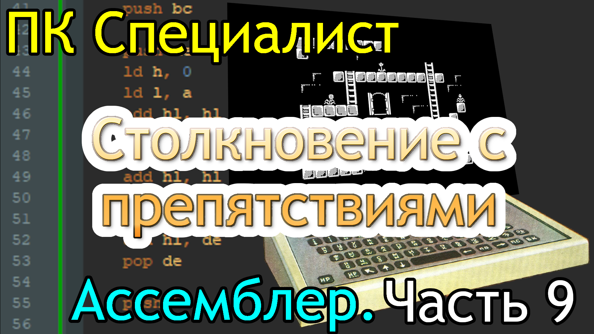В этой части обрабатываем столкновение с препятствиями. Telegaram: https://t.me/bare_asm Внимание! Код пишется для процессора Intel 8080 (КР580ВМ80А), но с использованием мнемоники процессора Zilog Z80. Графика в этих роликах используется из разных игр с ZX Spectrum, в основном из Rod-land. Все файлы из данного видео находятся здесь: https://github.com/CityAceE/specialist_assembly/ Инструменты: SjAMSPlus: https://github.com/z00m128/sjasmplus Emu80: https://www.emu80.org/ Это же видео на других площадках: https://www.youtube.com/@CityAceE https://rutube.ru/channel/24637489/ https://dzen.ru/cityacee https://vk.com/video/@cityacee