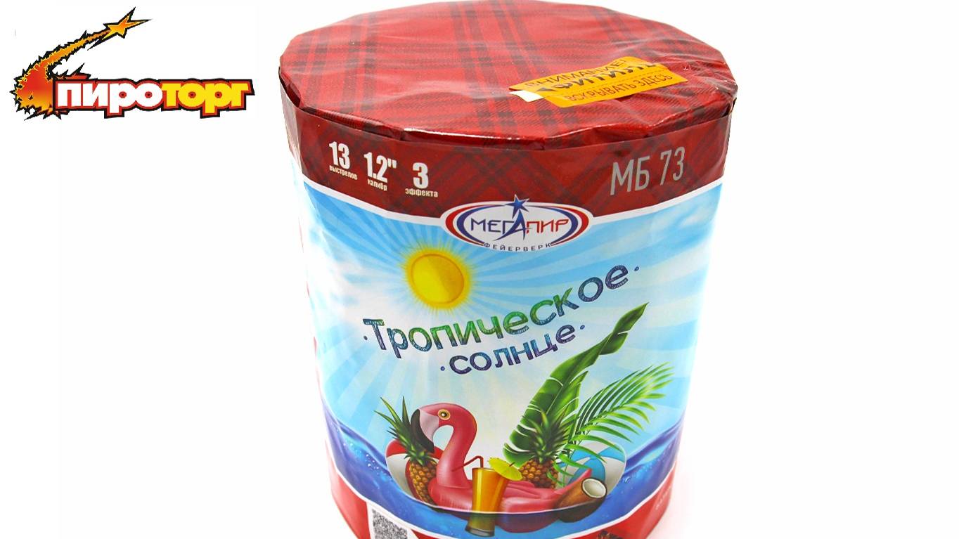 Батарея салютов "Тропическое солнце", 13 залпов, калибр 1,2", артикул МБ73, (увеличенная)