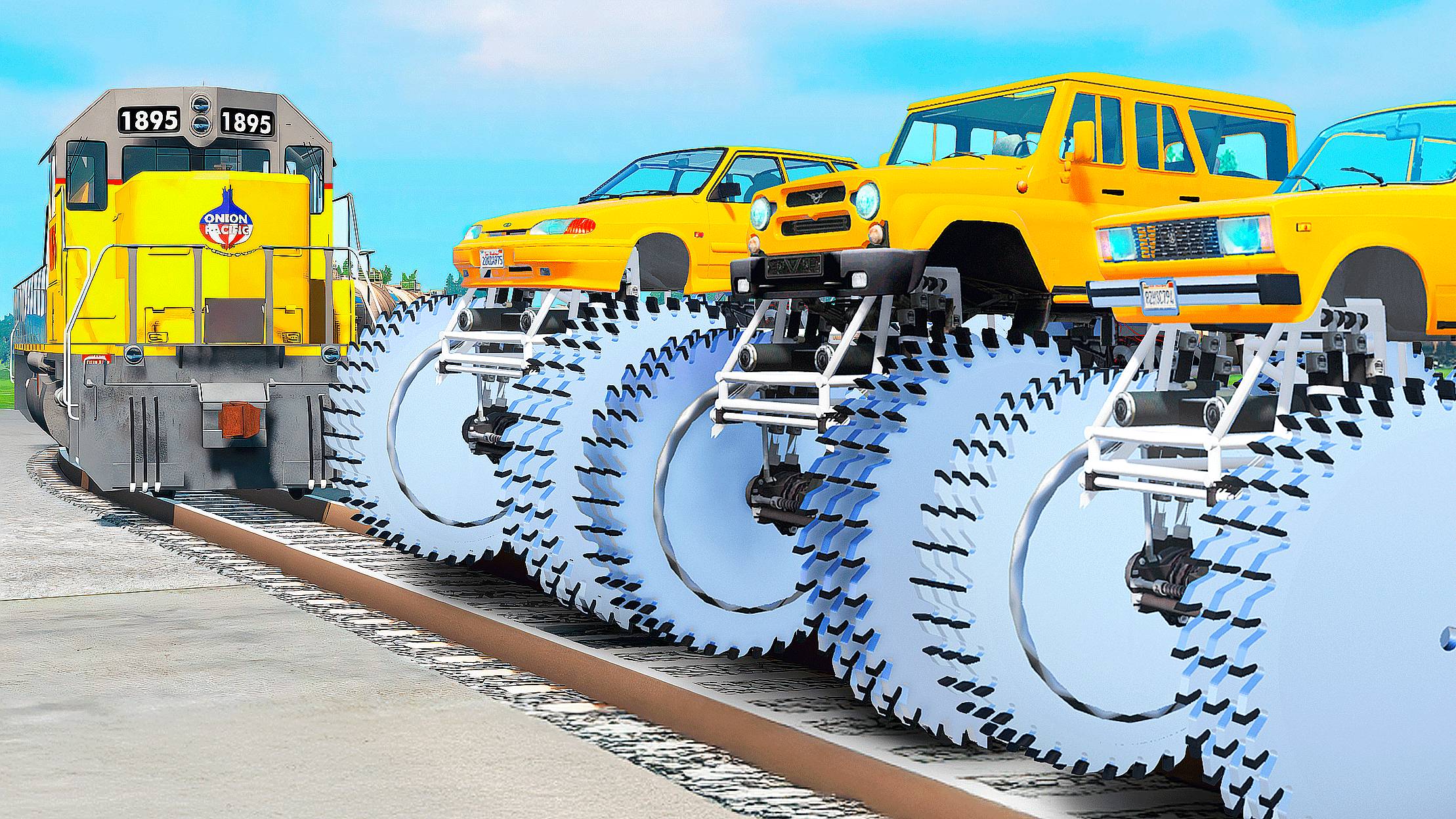 ПРОЕХАЛ РЕЛЬСЫ на ГИГАНТСКИХ МАШИНАХ с ПИЛАМИ в ГТА 5 МОДЫ - ЭКСПЕРИМЕНТЫ в GTA 5 MODS