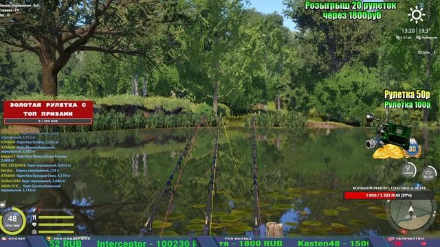 Поддержка донатом https://new.donatepay.ru/@1032463 Альтернативный донат https://www.donationalerts.com/r/kalyamba11 5536913964533059 карта Тинькоф Если стрим лагает,смотри стрим на трово https://trovo.live/s/Kalyamba_na_Ribalke Мой ВК - https://vk.com/kalyantv НИК в игре kalyan11 НАШ ДИСКОРД СЕРВЕР https://discord.gg/3ZeEDGs5h6 Заказ водоема на 1 час - 500р ( весь стрим 2500р ) Модерка на канале 1300р ( каждая следующая на 100р больше) ✅Призы в рулетке "ЗОЛОТАЯ" 500р ✔ ЗОЛОТО ✔ ПРЕМ ✔ КАТУШКИ РАПТОР 40, ВЕНГИ, ТАЙГА, СИЛЬВЕР 80, И другие ✔ ПАЛКИ ПИЛКЕРНАЯ, ДОНКА МОРСКИЕ, ✔ РОД ПОД, СТУЛЬЯ ✅Призы в рулетке СТАНДАРТ : 100р ✔ катушкИ РАПТОР 40, ВЕНГИ, ТАЙГА, СИЛЬВЕР 80, И другие ✔ катушки 60 для медного ( ЭВИИ, НАТОРЫ, ГОЛДА, и тд) ✔ ПИЛКЕРНОЕ УДИЛИЩЕ КОРОЛЕВА ОКЕАНА ✔ Морское Донное удилище ✔ прем ( 3, 7, 30 дней) ✔ золото ( 1, 3, 5, 10, 20 ,50) ✔ билет на море ( 1, 3, 5 дней) ✔ голд наживка и др. ✅Призы в рулетке "СТАРТОВАЯ" 50р ✔ катушка Венга ✔ катушка "silver80" ✔ катушка "БЕЛЫЙ КАЛИБР" ✔ катушка "Черный калибр" ✔ катушка "Протон" ✔ катушка "Нарга 6000" ✔ Набор Фидерист и спинингист ✔ Карповик Фортуна ✔ фидерные удилища ✔ прем, золото, алкашка, наживки и тд P.s Рулетка это не казино, а награда за поддержку стримера. Вечный ТОП ПОДДЕРЖКИ (10.06.2025) 1. Леха сварной 214 572 2. Dimon_pokemonchik 127 034 3. Skreb79 103 061 4. Interceptor 96 230 5. FishRus86 82 500