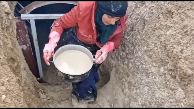В суровом, холодном горном регионе Мериам и ее дети сталкиваются с суровыми реалиями жизни, работая вместе над строительством пещеры для своего зимнего убежища. Пока они трудятся, неожиданно начинается сильный ливень, затапливая пещеру и разрушая штукатурку и цемент, которые они тщательно подготовили для строительства. Не смутившись, Мериам и ее дети изо всех сил пытаются удалить воду, пробираясь через густую грязь, которая заполнила пол пещеры, делая каждый шаг испытанием.