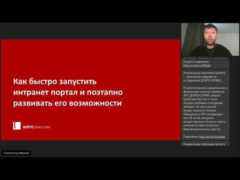 Ведущий вебинара – Антон Бобров, директор департамента корпоративных сервисов ГК «КОРУС Консалтинг». Специалист в области цифровизации HR. Реализовал более 20 проектов в компаниях «Газпром нефть», «Росатом», «Петрович», «Балтика» и др. Антон рассказал, как создать MVP портала (его первую версию – минимально жизнеспособный продукт), который будет востребованным и посещаемым сотрудниками. Поделился базовой функциональностью, оптимальной для запуска интранета и современными решениями, необходимыми для его дальнейшего развития. Основные темы: Стратегия MVP и ее преимущества при внедрении портала. Функциональность, достаточная для запуска базового портала в крупной компании Ошибки при создании базового портала От базового портала к многофункциональному интранету: ∙ как учесть интересы всех подразделений, ∙ дорожная карта реализации процессов, ∙ как защитить бюджет перед руководством. Узнайте больше про развитие корпоративных порталов на сайте: https://bitrix24.korusconsulting.ru Задавайте вопросы эксперту в комментариях или пишите на почту: digital@korusconsulting.ru 00:00 Вступление 05:21 Стратегия MVP и ее преимущества при внедрении портала. 12:04 Функциональность, достаточная для запуска базового портала в крупной компании 26:47 Ошибки при создании базового портала 46:41 Дорожная карта реализации процессов 54:34 Как защитить бюджет перед руководством 01:02:19 Ответы на вопросы