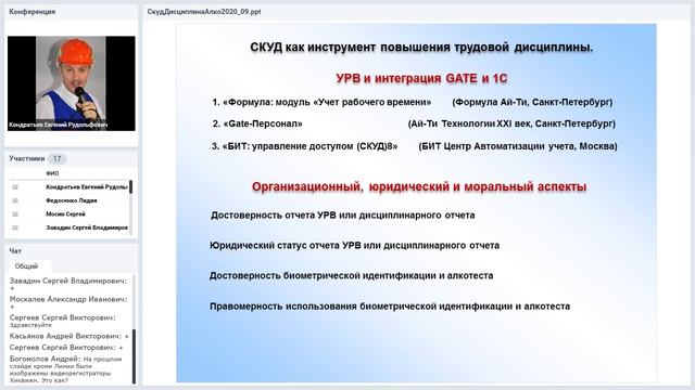 Вебинар “СКУД как инструмент повышения трудовой дисциплины. Типовое решение организации проходной предприятия с алкотестированием на базе СКУД бренда Gate” При создании производственных проходных с точками доступа с дополнительным контролем определенных групп сотрудников на уровень алкоголя преследуются цели: - ограничение доступа на территорию сотрудников с превышенным уровнем алкоголя; - привлечение внимания службы охраны к сотрудникам с превышенным уровнем алкоголя; - получение статистических данных о подобных прецедентах; - повышение ответственности сотрудников и трудовой дисциплины предприятия. Для фактической реализации точки доступа с алкотестированием используются штатные средства СКУД и различные приборы для анализа уровня алкоголя (алкометры, алкотестеры). Программа вебинара 1. Типовые примеры и методика использования СКУД как инструмента трудовой дисциплины. Опыт бренда Gate и партнеров инсталляторов. 2. Базовые принципы и варианты организации проходной с алкотестированием. 3. Технические особенности и специфика использования алкометров "Алкобарьер" и "Алкорамка" в составе СКУД Gate и Gate-IP-Web. 4. Типовое решение организации точки доступа с алкотестированием на базе СКУД Gate и прибора "Алкобарьер": состав, схема подключения, спецификация для заказа. Лектор - заместитель генерального директора по работе с клиентами Кондратьев Евгений Рудольфович Вебинар состоялся при поддержке ООО "ТД ТИНКО" 29.09.2020 СКУД Gate в Каталоге ТСБ "ТД ТИНКО" www.tinko.ru/catalog/category/826/