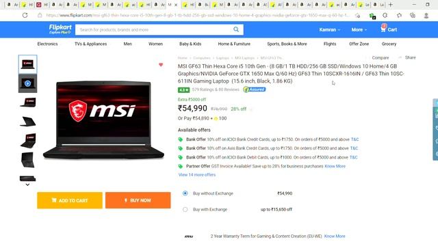 Amazon Laptop deals offer page : https://amzn.to/2Yh3Htw Flipkart offers page : Flipkart Credit and debit card offer details : Flipkart offer pages : https://bit.ly/3lda0ad Best Laptop deals above 35K and under 1Lac 50K Best laptops under 50000 for Gaming, Editing ,Office work, Content creation 1. ASUS VivoBook 15 i3 10th 8G ram 32Gb optane Memory 512Gbs Link : https://amzn.to/3DesrBv 2.HP 14s Core i3 11th Gen -8Gb Ram /256gb storage https://bit.ly/3a0suUK 3.HP 245 G7 Notebook Ryzen 5 3500U -8G 1tb Hdd https://bit.ly/3owxSav 4.Dell 15 (2021) Laptop i3-1115G4, 8GB, 256GB SSD https://amzn.to/3l7jZxz 5.HP 15 Ryzen 5 4500U Processor 8GB ram 256gb ssd https://amzn.to/3A8AEoP 6.MSI Modern 14 Ryzen 5 Hexa Core 4500U - 8 GB/512 GB SSD https://bit.ly/3mmgqmz 7.MSI Modern 15 Ryzen 5 Hexa Core 5500U -8 GB/512 GB SSD https://bit.ly/3A9TxHT 8.Acer Aspire 5 11th Gen Core i5-8GB/256Gb https://amzn.to/3iwewP3 9.acer Aspire 7 Core i5 10th Gen -8 GB/512 GB SSD/Nvidea 1650 - 4gb https://bit.ly/3iurm0c 10.HP Pavilion Gaming Ryzen 5 Hexa Core 4600H -8gb ram/1tb hdd/Nvidea 1650 - 4gb https://bit.ly/3mp6icE Best laptops under 60000 for Gaming, Editing ,Office work, Content creation 11.MSI GF63 Thin Hexa Core i5 10th Gen - Top deal under 60000 https://amzn.to/3uPz7mF 12.ASUS TUF Gaming F15-Intel Core i5-10300H/8 GB/512 GB SSD/Nvidea 1650ti - 4gb/144hrz display https://amzn.to/3uPz7mF 13.HP Pavilion Ryzen 5 Hexa Core 4600H - 144hrz display/8 GB/512 GB SSD/1650ti https://bit.ly/3A5eZ0M 14.ASUS TUF F15 FX506LI-HN270T i5-10300H/ GTX1650Ti-4GB/ 8G/ 1T SSD/ 15.6 FHD-144hz https://amzn.to/3uCre3w 15.15.MSI GF63 Thin Core i5 10th Gen -8 GB/512 GB SSD/4 GB Graphics/NVIDIA GeForce RTX 3050/144 Hz https://bit.ly/3moFPMi Best laptops under 70000 for Gaming, Editing ,Office work, Content creation 16.Acer Nitro 5 11th Gen Intel Core i5-144Hz display/8GB RAM/256 SSD+1TB HHD/W10H/RTX 3050 Graphics https://amzn.to/3Bmmhid 17.ASUS TUF Gaming A15 (2021)-FHD 144Hz, AMD Ryzen 7 4800H, RTX 3050 4GB Graphics/8GB/512GB SSD/Windows 10 https://amzn.to/3moHiCi Best laptops under 80000 for Gaming, Editing ,Office work, Content creation 18.ASUS TUF Dash F15-FHD 144Hz, Intel Core i5-11300H 11th Gen, RTX 3050 Ti 4GB Graphics/8GB/512GB SSD https://amzn.to/3iuu2Li 19.APPLE MacBook Air M1-8 GB/256 GB SSD https://bit.ly/3moIKEK 20.ASUS ROG Zephyrus G14-FHD 144Hz, AMD Ryzen 7 5800HS, GeForce GTX 1650 4GB Graphics/8GB/512GB SSD https://amzn.to/3Dc2cM2 Best laptops under 90000 for Gaming, Editing ,Office work, Content creation 21.Acer Nitro 5 Core i7 11th Gen-16 GB/256GB SSD/1 TB HDD/Win 10/4 GB Graphics/NVIDIA GeForce RTX 3050 Ti/144 Hz https://amzn.to/3Fi24w0 22.Victus by HP Ryzen 7 5800H-16GB RAM/512GB SSD/4GB RTX 3050Ti Graphics/Flicker Free Display/144Hz https://amzn.to/3Fi2zGo Best laptops under 100000 for Gaming, Editing ,Office work, Content creation 23.acer Predator Helios 300 Octa Core i7 10th Gen-16 GB/1 TB HDD/256 GB SSD/Windows 10 Home/6 GB Graphics/NVIDIA GeForce RTX 3060/144 Hz https://bit.ly/3mnJNVG 24.Lenovo Legion 5 AMD Ryzen 7 5800H-16GB/512GB SSD/Windows 10/MS Office/NVIDIA RTX 3050 4GB/165Hz Refresh https://amzn.to/3FhZO83 Best laptops under 150000 for Gaming, Editing ,Office work, Content creation 25.Lenovo Legion 5 Pro Ryzen 7 Octa Core 5800H-16 GB/1 TB SSD/Windows 10 Home/6 GB Graphics/NVIDIA GeForce RTX 3060/165 Hz https://www.flipkart.com/lenovo-legion-5-pro-ryzen-7-octa-core-5800h-16-gb-1-tb-ssd-windows-10-home-6-gb-graphics-nvidia-geforce-rtx-3060-165-hz-16ach6h-gaming-laptop/p/itm304ba1d23c6ea?pid=COMG57SBHZT7XXY6&lid=LSTCOMG57SBHZT7XXY62Q2BCJ&marketplace=FLIPKART&q=rtx+3060+laptop&store=6bo/b5g&srno=s_1_13&otracker=AS_QueryStore_OrganicAutoSuggest_1_15_na_na_ps&otracker1=AS_QueryStore_OrganicAutoSuggest_1_15_na_na_ps&fm=SEARCH&iid=4a825672-f5b2-4b19-b50e-0824ceeb1bed.COMG57SBHZT7XXY6.SEARCH&ppt=sp&ppn=sp&ssid=jzdn76v9hc0000001633252869445&qH=aa4f1c567bada069&affid=hello19th&affExtParam1=KAM-01001/M7P&affExtParam2=ENKR20211003A97436417