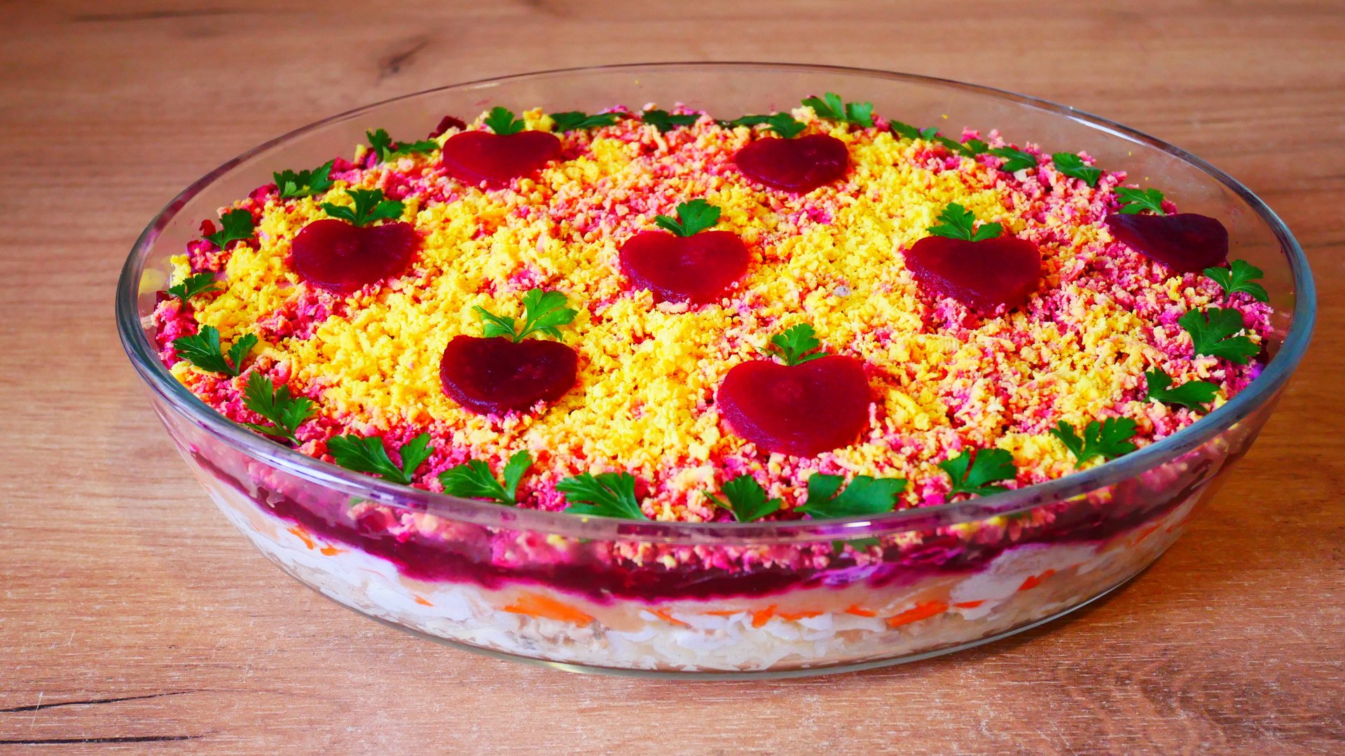 Вступить в *Мои рабочие рецепты* или *КРЕМОВЫЕ торты* НАПИСАТЬ МНЕ https://t.me/Iratort444 VK сообщество: https://vk.com/club225549357 ГОТОВИМ С ЛЮБОВЬЮ RUTUBE: https://rutube.ru/channel/29858979/ Дзен ГОТОВИМ С ЛЮБОВЬЮ https://zen.yandex.ru/id/60c1b1f6b6ad3d2a24a7ddec Телеграмм (telegram) https://t.me/cookingwithLOVE1 ГОТОВИМ С ЛЮБОВЬЮ на Ютубе!!! https://www.youtube.com/@ГотовимсЛЮБОВЬЮ НАШ канал Дружная СЕМЬЯ https://www.youtube.com/channel/UC7tGSjvQDbk5tQGynWVZ_Eg передатьПРИВЕТпожелатьУДАЧИ https://www.donationalerts.com/r/gotovim_s_luboviy Instagram: https://www.instagram.com/gotovim_s_luboviy/ Салат “Горбуша Под Шубой” с Сюрпризом: Икра Минтая Делает Его Особенным! 2 отварного картофеля 1 б. горбуши 1 луковица 3 отварных яйца 1 отварная морковь 1 б. икры минтая 1 отварная свекла майонез, листья петрушки