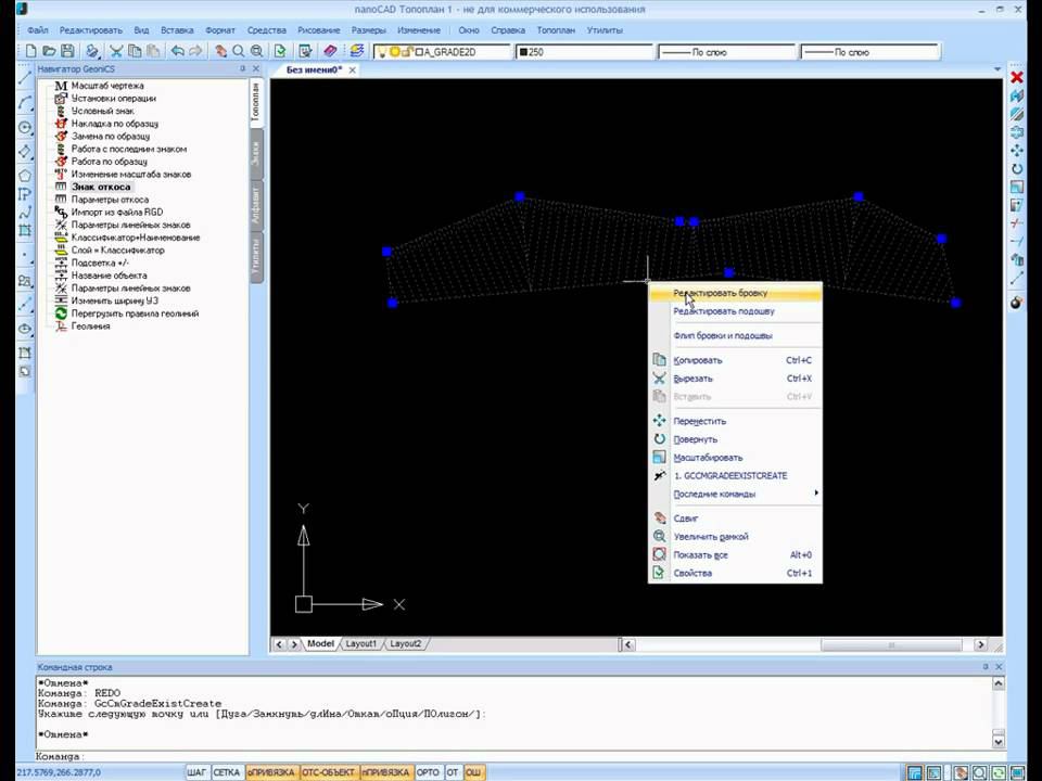 nanoCAD Геоника. Топоплан, ситуация: откос