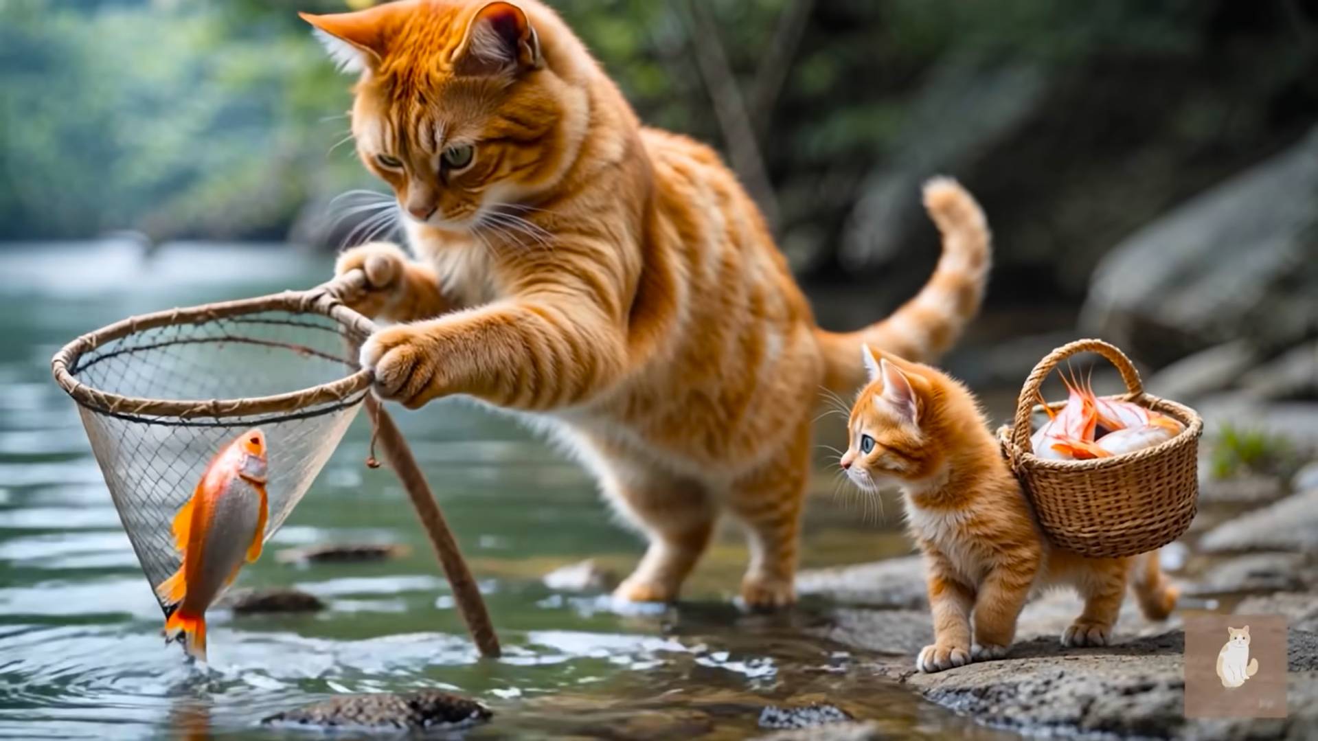 😹Мама кошечка ловит рыбу со своим маленьким сыночком🔥