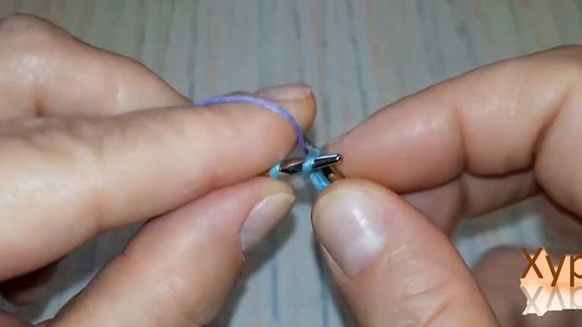 Рельефный узор на спицах. Наборный ряд на спицы при помощи крючка.