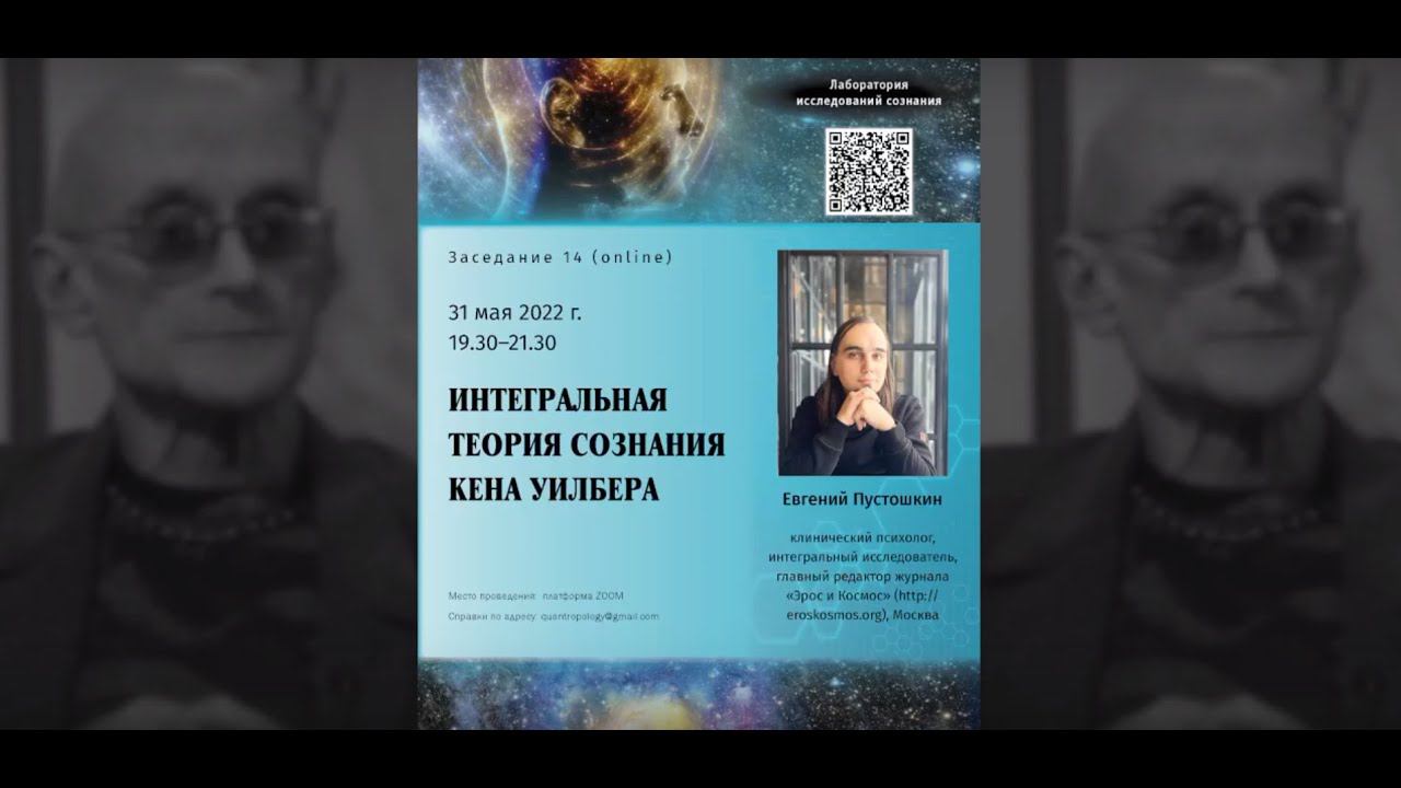 Интегральная теория сознания Кена Уилбера В середине 1990-х американский постдисциплинарный мыслитель Кен Уилбер, выходец из трансперсонологических кругов, являющийся основателем интернационального движения интегральной метатеории и практики, публикует программную статью «Интегральная теория сознания» в передовом международном «Журнале исследований сознания» (Journal of Consciousness Studies), среди авторов которого — Дэвид Чалмерс, Дэниел Деннет, Фрэнсис Крик, Эван Томпсон, Франсиско Варела, Майкл Газзанига и др. Статья «Интегральная теория сознания» представляет собой краткое изложение интегральной (то есть целостной, всеобъемлющей) метатеории, развиваемой автором, в применении к становящейся науке о сознании (science of consciousness). В 2022 г. новая, исправленная редакция перевода статьи была опубликована в эл. журнале «Эрос и Космос» (https://eroskosmos.org/integral-theory-of-consciousness/). Предложенная Уилбером «интегральная теория сознания» до сих пор актуальна и предлагает новаторскую политику обязательной интеграции методов исследования сознания 1-го, 2-го и 3-го лица как минимально необходимое условие для развития сколь-нибудь исчерпывающего понимания феномена сознания. Уилбер раскрывает идеологически нейтральную систему координат, посредством которой можно согласовать и объединить такие разношёрстные дисциплины изучения сознания, как когнитивные науки, школы интроспекции, нейропсихология, индивидуальная психотерапия, социальная психология, клиническая психиатрия, психология развития (ребёнка и взрослого), психосоматическая медицина, исследования изменённых состояний сознания (ИСС), восточные и созерцательные традиции преобразования самосознания человека, а также подходы «квантового сознания» и исследований биоэнергии. В рамках доклада рассмотрены основные идеи статьи в контексте общего интегрального метаподхода, а также вкратце прослежена их эволюция в направлении интегрального методологического плюрализма и интегральной постметафизики. Автор доклада: Евгений Пустошкин Клинический психолог, выпускник кафедры медицинской психологии и психофизиологии факультета психологии СПбГУ; гл. ред. эл. журнала «Эрос и Космос» (http://eroskosmos.org); отв. ред. по России эл. журнала «Integral Leadership Review»; переводчик книг и статей постдисциплинарного мыслителя Кена Уилбера; интегральный исследователь-практик. Ведёт частную практику психолога в Москве и онлайн, а также курсы и семинары по интегральной психологии и медитации. Авторский блог Transcendelia: http://pustoshkin.com Доклад прочитан 31 мая 2022 г. в рамках Лаборатории исследований сознания при Институте философии человека РГПУ им. Герцена (г. Санкт-Петербург)