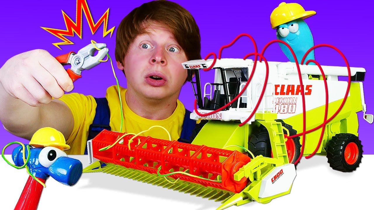 Автомастерская: комбайн запутался в проволоке! Развивающие мультики про машинки для детей