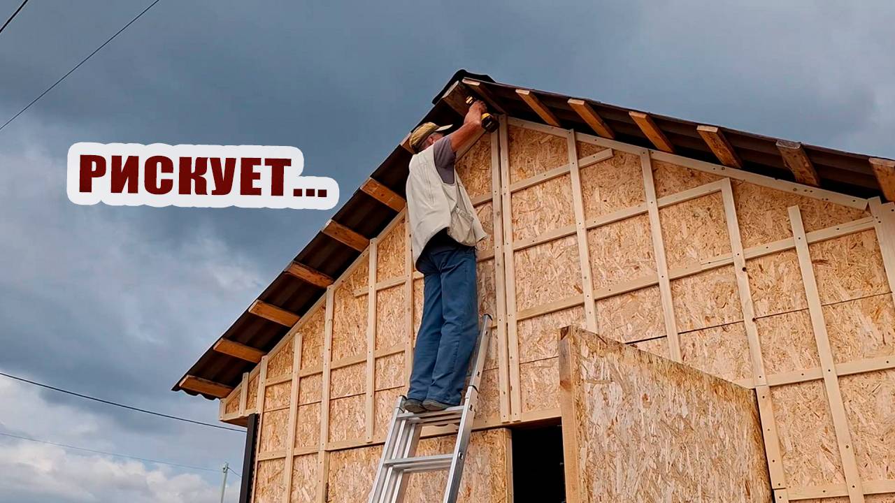 Рискует, но меня не слышит. Продолжаем обшивать гараж. Сделано немало