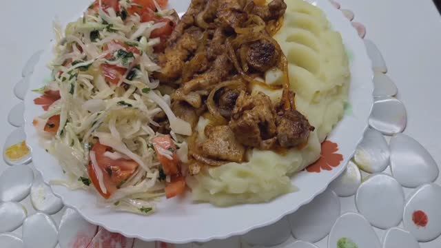 Ингредиенты: Свинина — 500 г Лук —1 крупная ю Чеснок — 2-3 зубчика (по желанию) Соль — по вкусу Перец черный молотый — по вкусу Паприка — 1 ч. ложка (по желанию) Специи (например, тимьян, розмарин или прованские травы) — по вкусу Растительное масло — для жарки ( если понадобится). Приготовление. 1.Свинину нарежьте небольшими кусочками (примерно 2-3 см). Посолите и поперчите мясо, добавьте паприку и другие специи. Хорошо перемешайте, чтобы специи равномерно распределились. 2.Лук нарежьте полукольцами или кубиками (по желанию). 3.Разогрейте сковороду на среднем огне и добавьте растительное масло (если в этом есть необходимость). 4.Выложите кусочки свинины на сковороду и обжаривайте до золотистой корочки, периодически помешивая (примерно 5-7 минут). 5.Когда мясо подрумянится, добавьте нарезанный лук и чеснок (если используете) в сковороду. 6.Обжаривайте все вместе, пока лук не станет мягким и золотистым (примерно 5-7 минут). 7.Уменьшите огонь, накройте сковороду крышкой и тушите еще 10-15 минут, чтобы свинина стала мягкой и пропиталась ароматами. 8.Подавайте жареную свинину с луком и специями горячей, с гарниром по Вашему выбору (например, картофель, рис или овощи). Приятного аппетита!