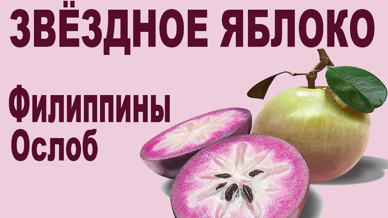 Звездное яблоко – ( «каинито) . Растёт в америке и в странах с тропическим климатом. Круглой формы. В зависимости от сорта зелёное или фиолетовое. Мякоть также белая полупрозрачная или фиолетовая немного желейная. Кожура горчит и в пищу не используется. В недозрелых плодах ощущается терпкость и сок немного липкий, а Спелые ..- сладкие, сочные напоминающие запечёные яблоки, бананы, может быть даже дыню, а иногда сладкую манную кашу, ... .. Аналогичный мой фильм Дзене https://zen.me/kDQQa