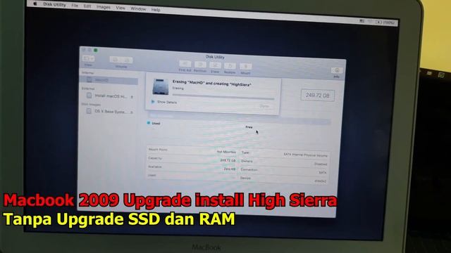 Macbook lama Mid2009 install os high sierra