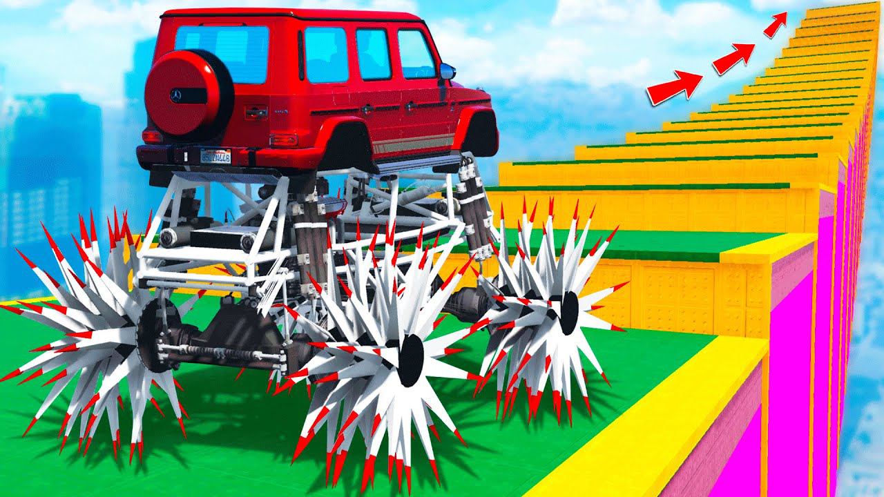 КАК ДАЛЕКО ГИГАНТСКИЙ БИГФУТ ГЕЛИК на КОЛЮЧКАХ СМОЖЕТ ЗАБРАТЬСЯ по СТУПЕНЬКАМ ЛЕСТНИЦЫ в ГТА 5 МОДЫ