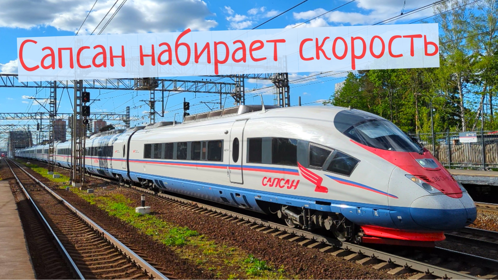 Сверхдлинный Сапсан разгоняется в Химках перед Москвой