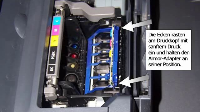 Einsetzen eines ARMOR Adapters: Adapter einbau in einen Canon Pixma ip4500 Drucker zur Nutzung kompatibler Druckerpatronen statt originaler