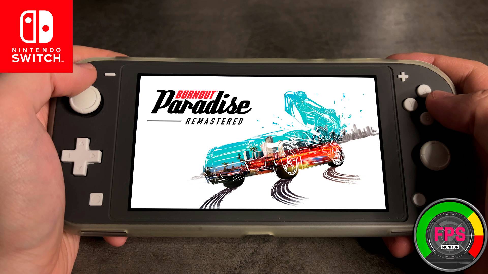 Burnout Paradise Remastered Nintendo Switch Lite Gameplay - FPS Monitor