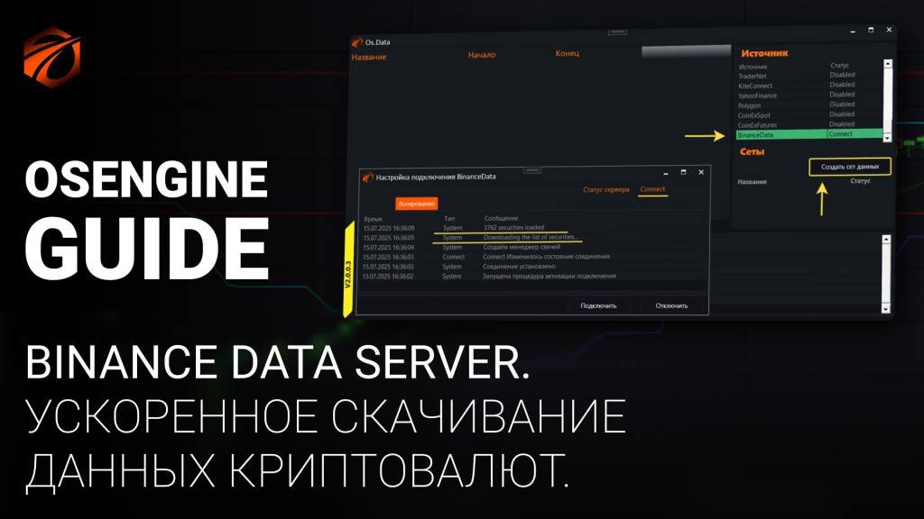 Лента сделок с этого типа коннектора качается примерно в 100 раз быстрее, чем через торговый коннектор к Binance. Плюс данное подключение не требует регистрации. Свои комментарии и вопросы вы можете оставить в официальной группе поддержки OsEngine: https://t.me/osengine_official_support Ссылка на статью в Гайде: https://smart-lab.ru/company/os_engine/blog/1180332.php МегаГайд по алготрейдингу: https://smart-lab.ru/company/os_engine/blog/1024149.php
