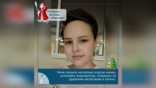 Эмма больна смертельно опасной болезнью, но она никогда не унывает. Боится ли она? Конечно! Ей ведь только 13 лет, а уже приходится каждый день доказывать этому миру, что она достойна просыпаться каждое утро, дышать и ЖИТЬ. У Эммы остеосаркома – злокачественная опухоль костной ткани, очень агрессивный тип РАКа. Только вовремя начатое лечение может спасти Эмму. Помогите ей, подарите надежду на выздоровление. ⠀ Эмма Семешева, 13 лет. Диагноз: Остеосаркома, метастазы в правое легкое (РАК) Необходимо: Лечение в Severance Hospital (г. Сеул, Южная Корея). Сумма сбора: 2 150 000 руб. ?История и документы на сайте: https://kseniya.fund/komu-pomoch/emma-semesheva/?FAND=rutub ⠀ Весной 2020 года у Эммы стала побаливать правая нога. К лету уже появилась припухлость на правом бедре. Врачи сразу заподозрили страшную болезнь. Томография и биопсия подтвердили их опасения – это был РАК. Эмма прошла несколько курсов химии, установку эндопротеза, операции по удалению метастазов в легких. Но остеосаркома слишком агрессивна. Лечение не помогло. РАК продолжал съедать здоровье девочки. ⠀ Родители за помощью обратились к врачам Южной Кореи. Они готовы подобрать для Эммы подходящее лечение, но для этого нужны огромные деньги, которых в обычной семье просто нет. Эмма верит, что сможет победить РАК. Ведь она ещё столько всего не успела. Она только поступила в художественную школу, мечтает о карьере дизайнера. Ей ещё нужно успеть завести добермана и посадить дерево. Помогите мечтам девочки осуществиться. Она очень хочет жить! ⠀ СПАСИТЕ ЭММУ! ⠀ ✅Больше способов помощи на сайте фонда https://kseniya.fund/komu-pomoch/emma-semesheva/?FAND=rutub ⠀ ✅ОТПРАВЬТЕ СМС: ⠀ - на номер 3434 со словами ЛЕЧИМ ЭММУ и любой суммой. Пример: ЛЕЧИМ ЭММУ 250; ⠀ - на номер 5275 и в сообщении укажите цифрами сумму пожертвования в рублях. Пример: 250. ⠀ ✅Банковские реквизиты: Получатель платежа: Благотворительный фонд «Ксения Спасает Жизни» ИНН 7814779325 КПП 781401001 ОГРН 1207800101497 ПАО «СБЕРБАНК» Р/с 40701810755000000688 Банк: СЕВЕРО-ЗАПАДНЫЙ БАНК ПАО СБЕРБАНК БИК: 044030653 К/с 30101810500000000653 Назначение платежа: Благотворительное пожертвование для Семешевой Эммы.