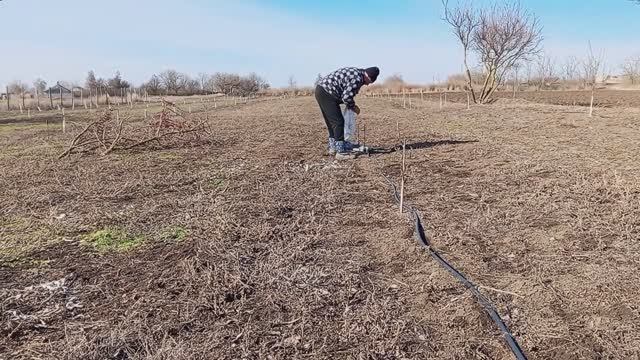 Первые весенние работы в молодом ореховом саду. 8 марта. Река Ея.